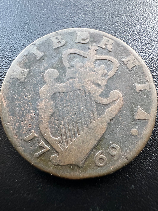 1769 King George III US Colonial Half 1/2 Penny Copper Irish Coin Harp Ireland