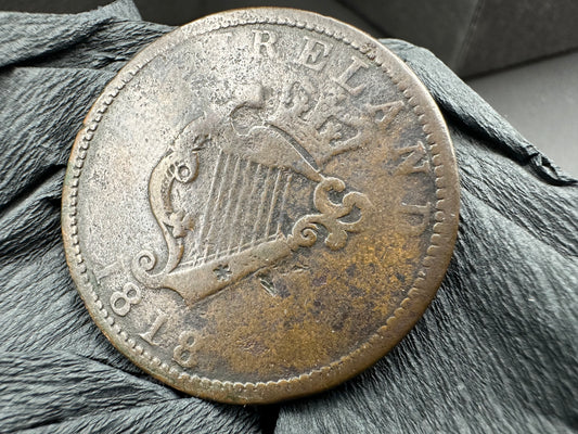 1818 Ireland One penny token - Harp Luke XX Chap. XXV Ver. Withers 1915a