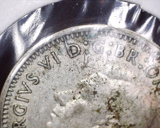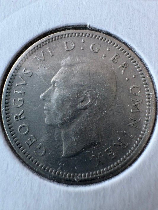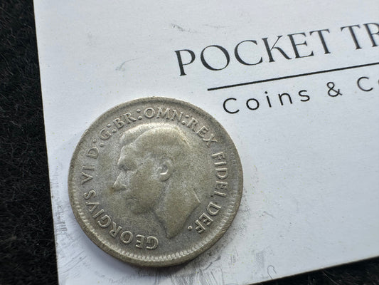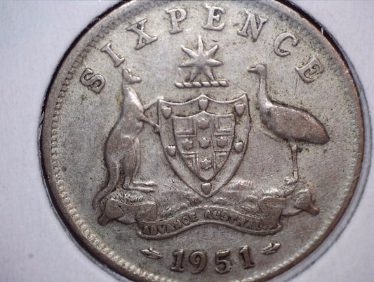 1951 Australian Six Pence - 50% Silver - Error Variety Missing Emu Leg