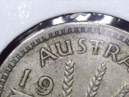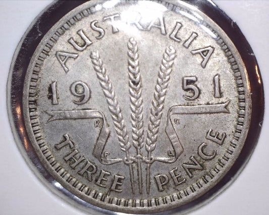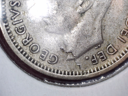 1951 - PL Australian Three Pence - 50% Silver - Die Crack Errors