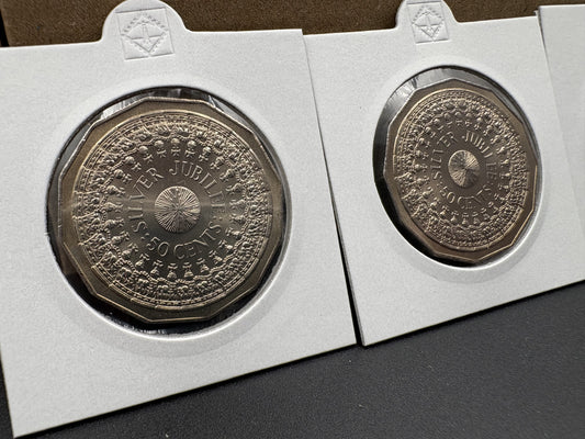 1977 Uncirculated 50 cent coin - Silver Jubilee Queen Elizabeth IIRegular price $10.00 AUDRegular priceUnit price / per