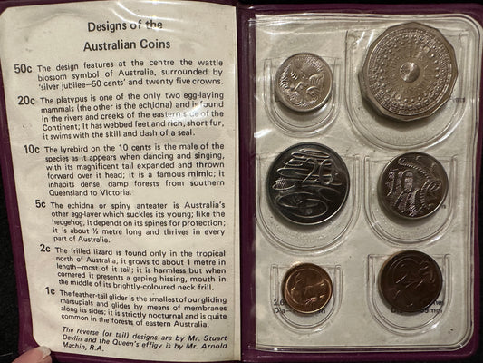 1977 Royal Australian Mint QEII 25th Jubilee Uncirculated Six Coin Year Set - Purple WalletRegular price $40.00 AUDRegular priceUnit price / per-