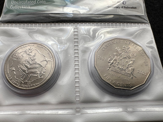 2001 20 & 50 cent Centenary of Federation 2 Coin Set - Norfolk Island UNCIRCULATED