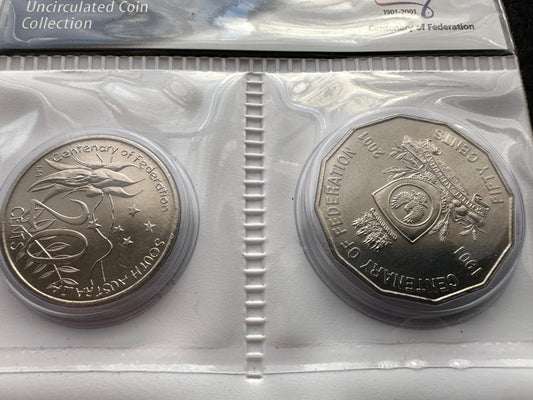 2001 20 & 50 cent Centenary of Federation 2 Coin Set - South Australia UNCIRCULATED
