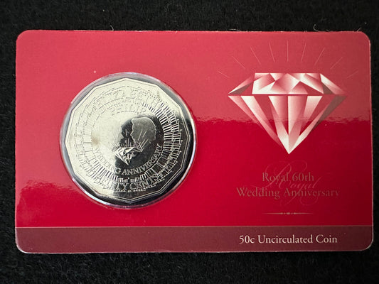 2007 50c Royal 60th Wedding Anniversary Uncirculated Coin on wallet card
