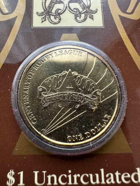 2008 One Dollar $1 Centenary of Rugby League Uncirculated Australian Decimal Coin