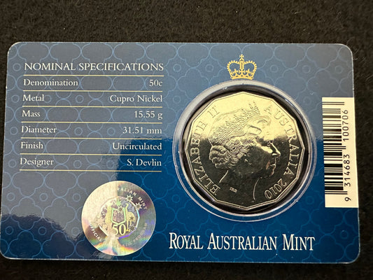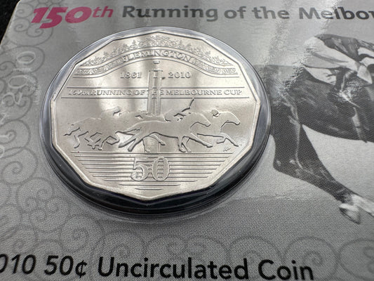 2010 50th Running of the Melbourne Cup 50 cent Carded Coin