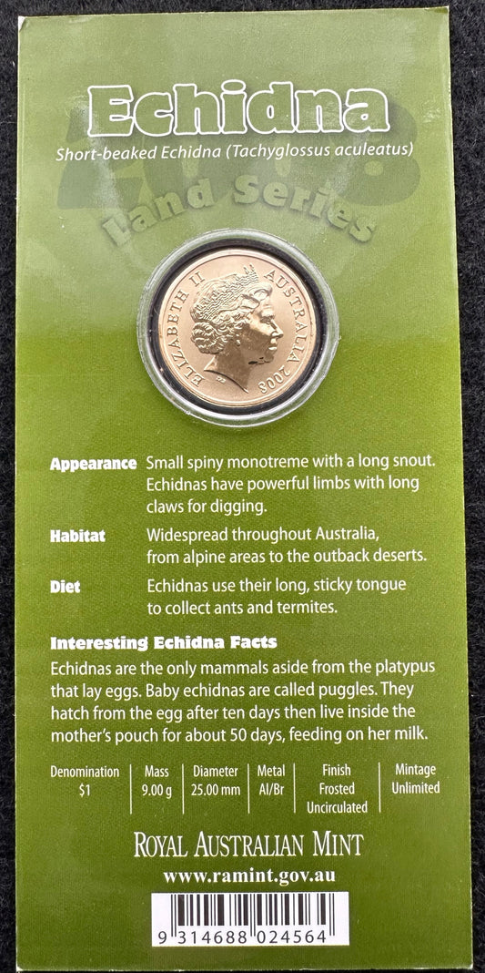 2009 Land Series - Echidna One Dollar ($1) Uncirculated Australian Decimal Coin