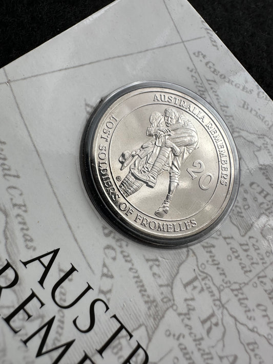 2010 20 cent Australia Remembers Lost Soldiers of Fromelles Coin on card