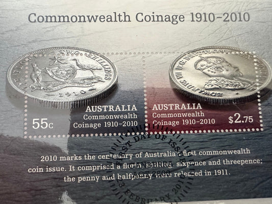 2010 $1 Coin PNC "Australian Commonwealth Coinage 1910-2010"-Stamped 23 Feb 2010