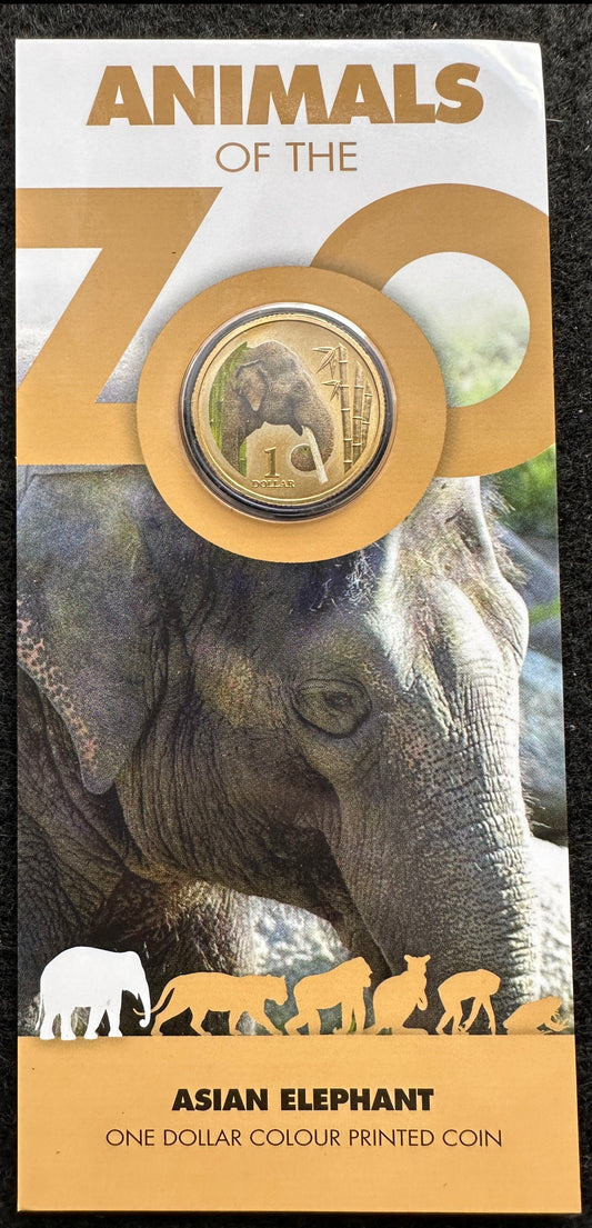 2012 $1 Animals of the Zoo Series coloured coin - Asian Elephant