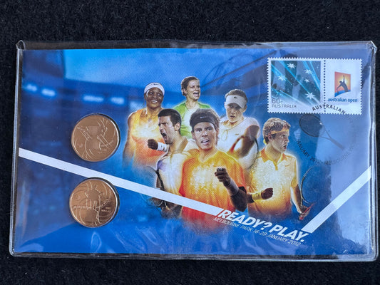 2012 $1 One Dollar Australian Open 2 Coin & Stamp Cover PNC