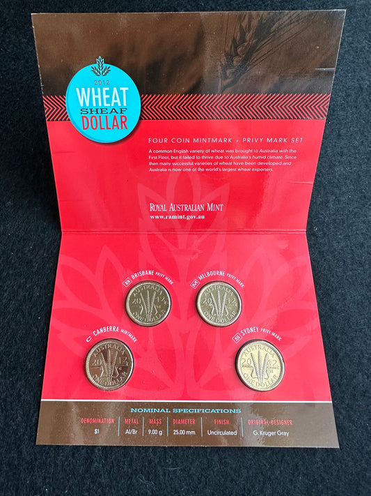 2012 Wheat Sheaf C,S,B,M One Dollar ($1) Uncirculated Australian Decimal Four Coin Set