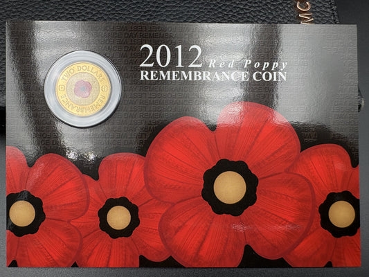 2012 $2 Remembrance Red Poppy Uncirculated Coin in RSL Card
