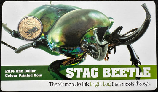 2014 $1 Bright Bugs Series – Stag Beetle Uncirculated Coin in Card