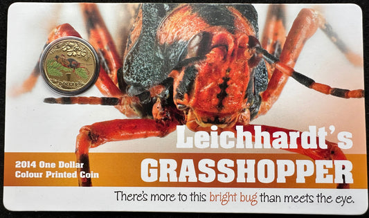 2014 $1 Bright Bugs Series – Leichhardt's Grasshopper Uncirculated Coin in Card