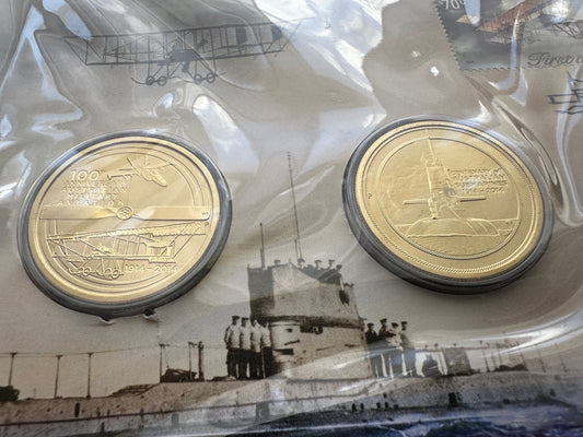 2014 $1 Centenary of Military Aviation and Submarines 2 Coin and Stamp Cover PNC