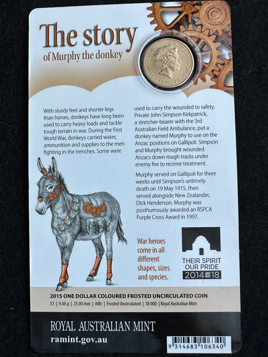 2015 $1 Dollar Unlikely Heroes Great & Small - Murphy the Donkey UNC