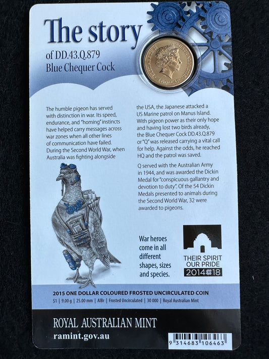 2015 $1 Dollar Unlikely Heroes Great & Small - Blue Chequer Cock UNC