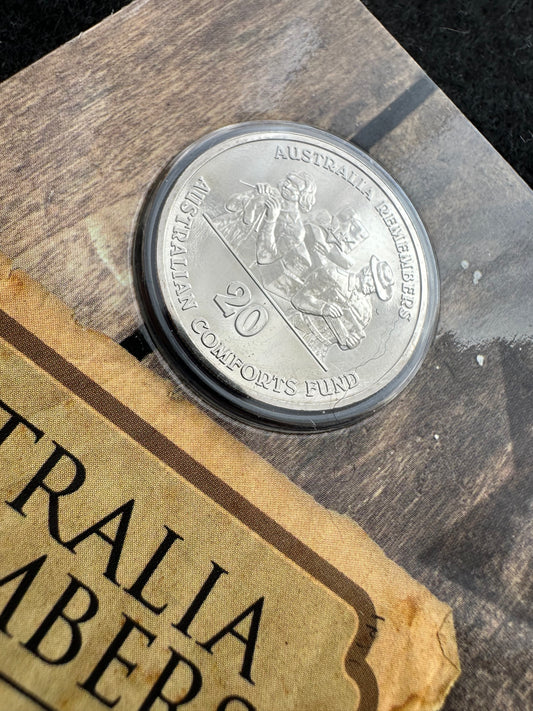 2014 20 cent Australia Remembers Australian Comforts Fund Coin on card