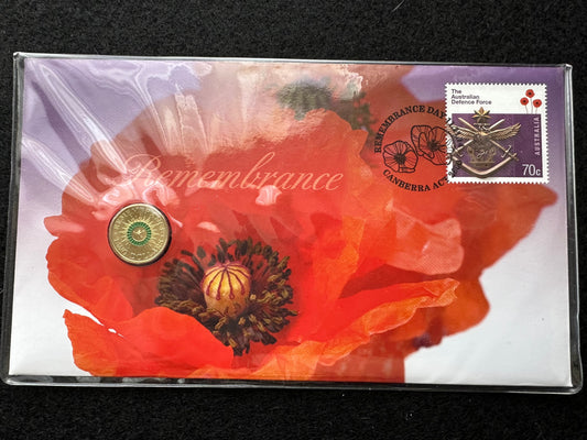2014 $2 Uncirculated 'C' Mintmark Coloured Coin - Remembrance Day Green Dove in Tri-fold card