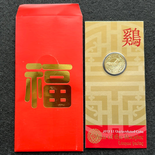 2017 $1 Lunar Year of the Rooster Al Br Unc Coin in RAM Card