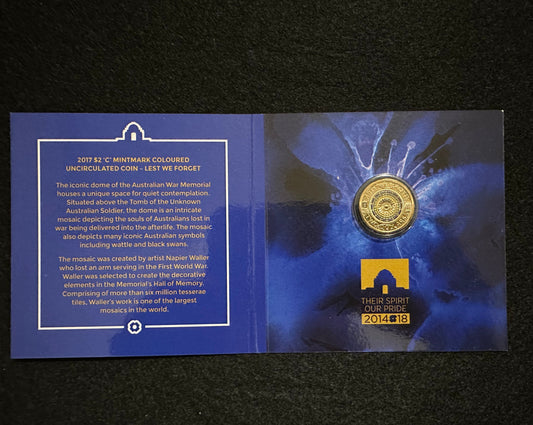 2017 $2 LEST We Forget 'C' Mintmark Coloured Uncirculated Coin in card