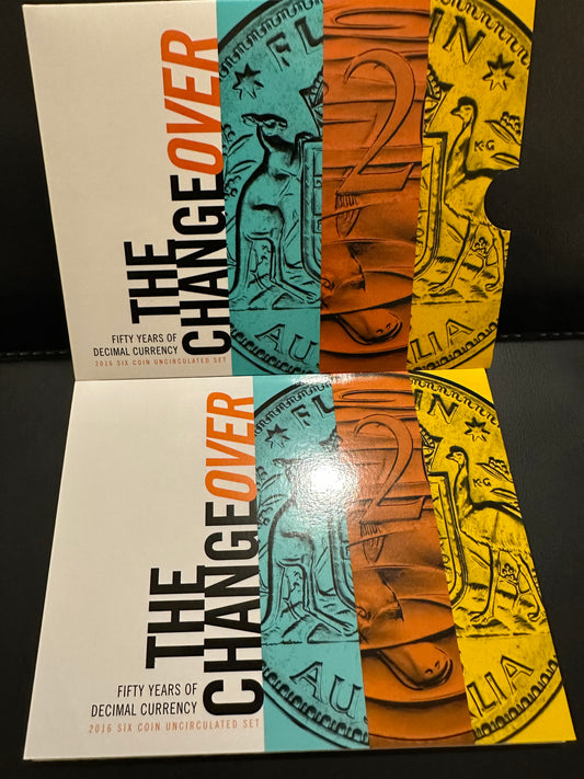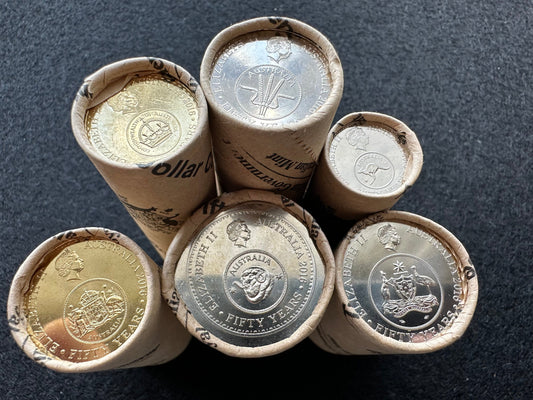 2016 Decimal Currency (5c, 10c, 20c, 50c $1, $2) 50th Anniversary Changeover Australian Decimal Mint Six Roll Set