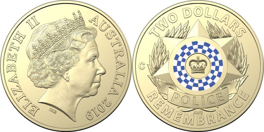 2019 $2 30th Anniversary National Police Remembrance 'C' Mintmark Coloured Uncirculated Coin on cardRegular price $55.00 AUDRegular priceUnit price / per$85.00 AUDSale price $55.00 AUDSale