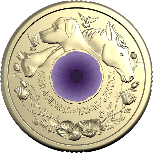 2024 War Animals Remembrance $2 Purple Poppy Coloured PNC