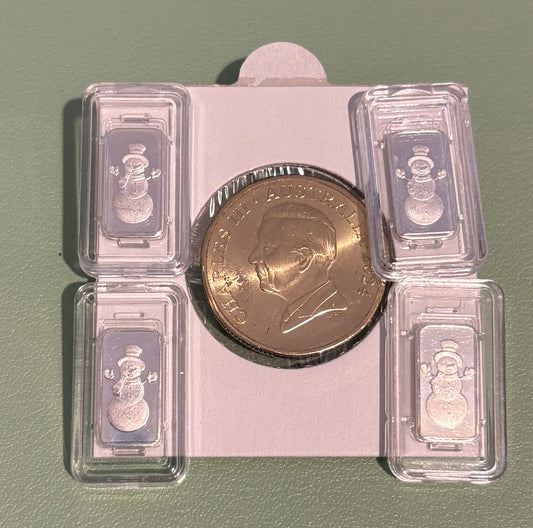 Mini Fractional Silver 1 gram Rectangular Bar - Snowman