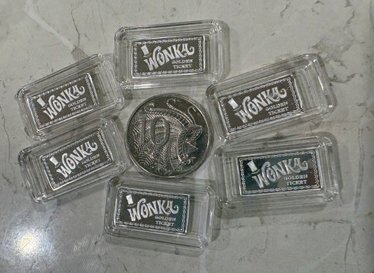 Mini Fractional Silver 2 gram Rectangular Bar - Wonka Golden Ticket Bar