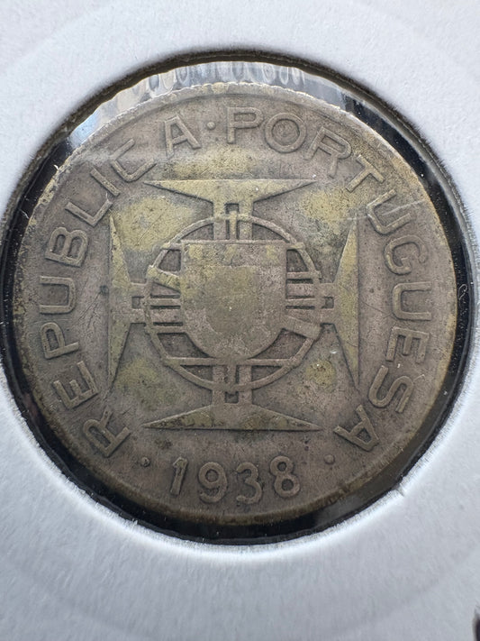 1938 Mozambique 2 1/2 Escudos .650 Silver KM# 68