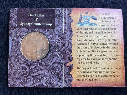2008 $1 100 Years of Australia's Original Coat of Arms "B,C,M & S" Counterstamp carded coin