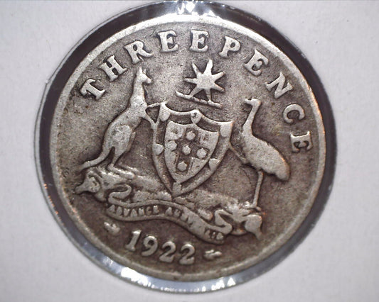 1922 Australian Three Pence - 92.5% Silver - Rotation Error