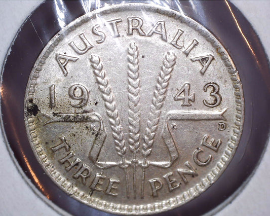 1943 D Australian Three Pence - 92.5% Silver - Die Crack Error