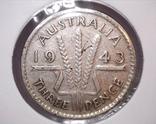 1943 M Australian Three Pence - 92.5% Silver - Die Crack Error