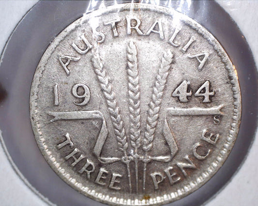 1944 - S Australian Three Pence - 92.5% Silver - Filled 4 Error
