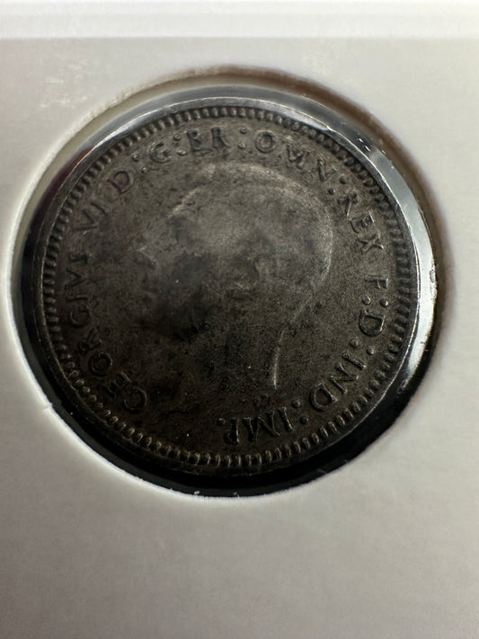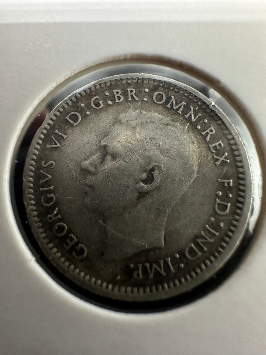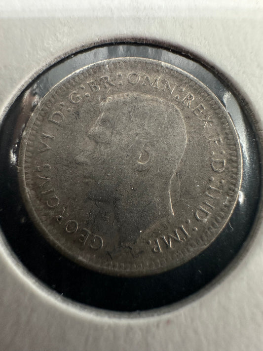 1949 Australian Three Pence - 50% Silver - Die Crack Error