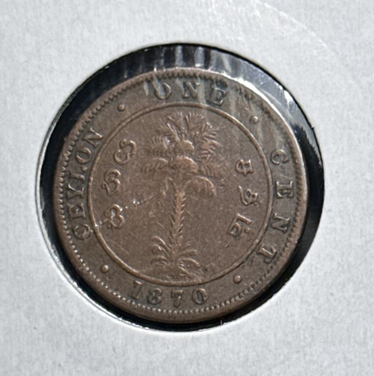 1870 Ceylon (Sri Lanka) One Cent (Rupee) Coin KM# 92