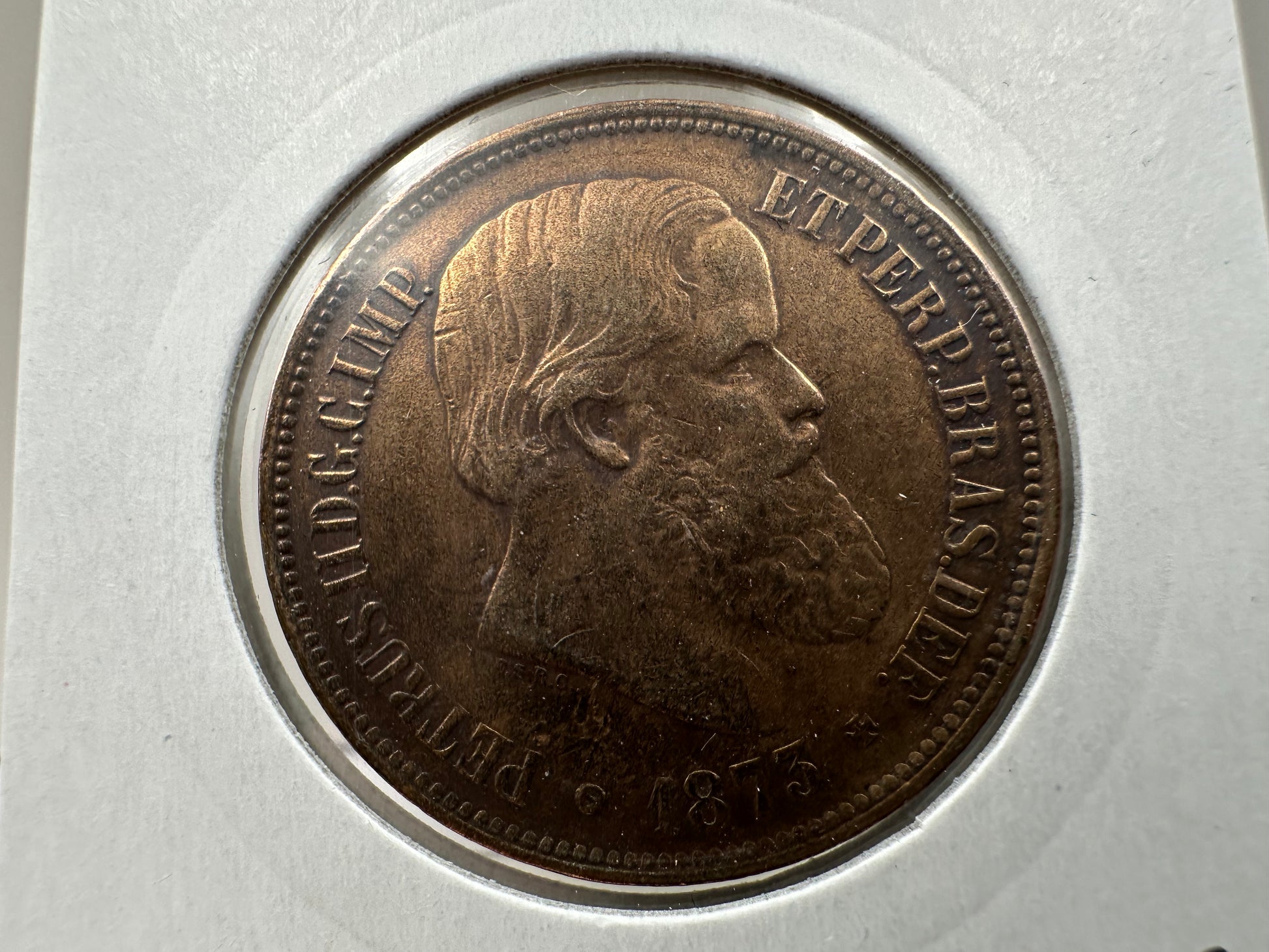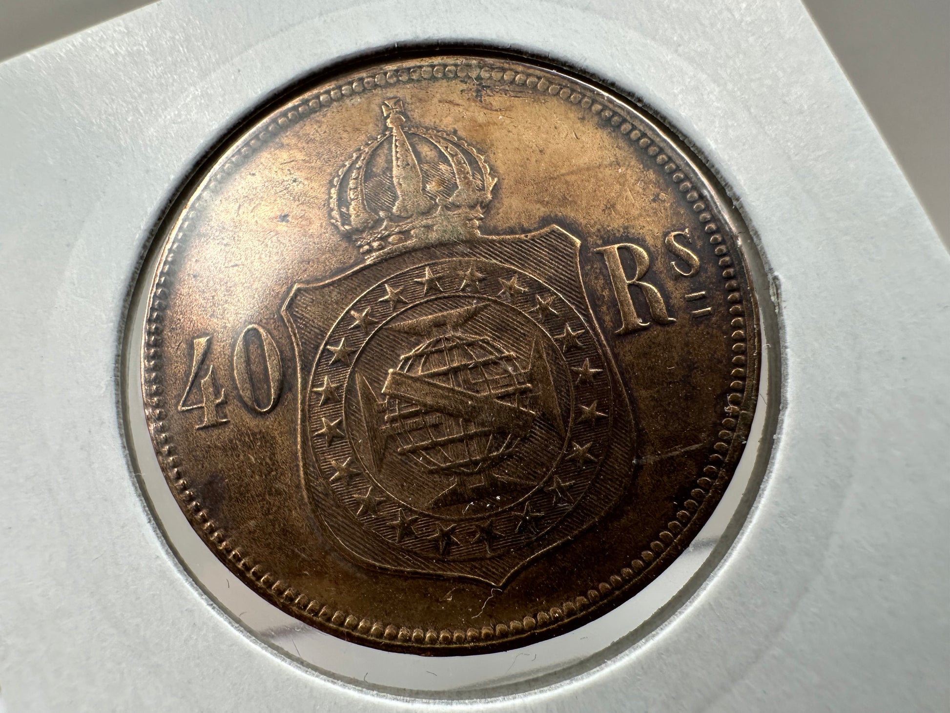 1873 Brazil Bronze 40 Reis Petras II