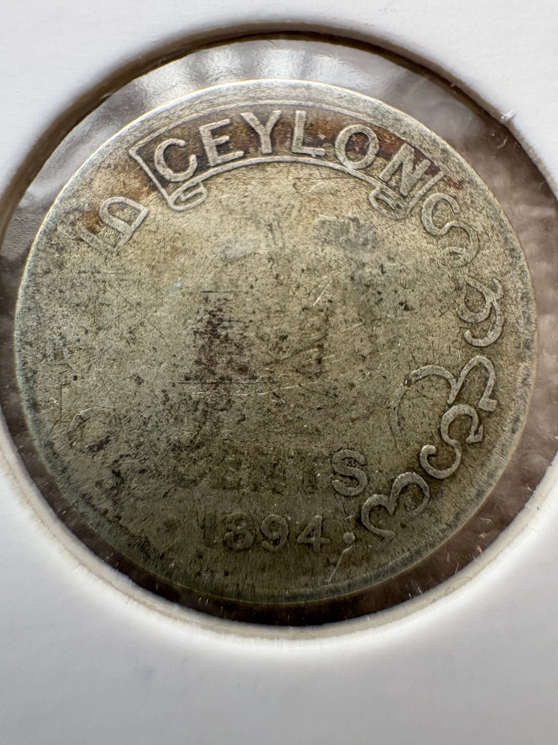 1894 Ceylon 10 cents .800 Silver KM# 94