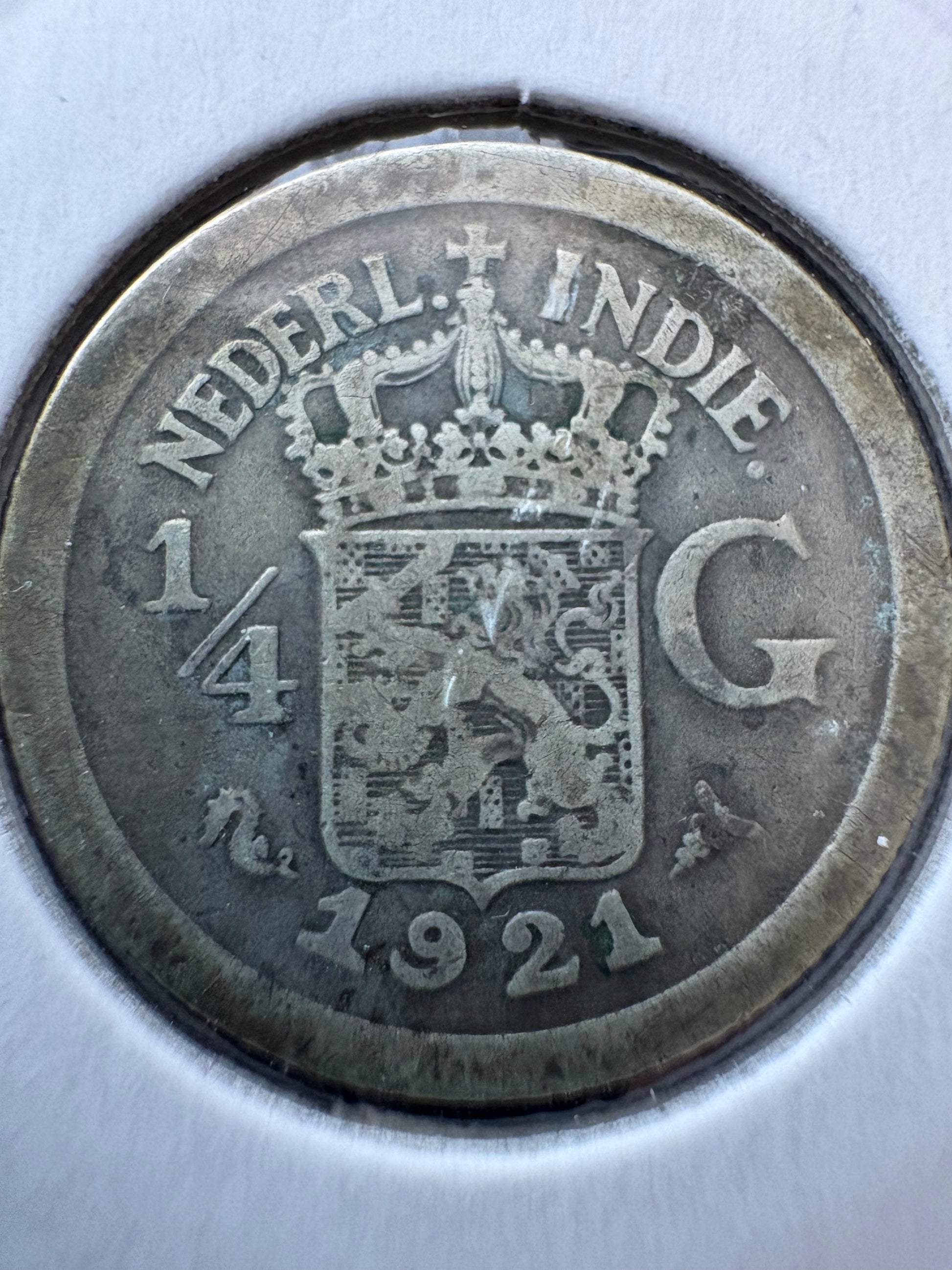 1921 Netherlands 1/4 Gulden .720 Silver KM# 312