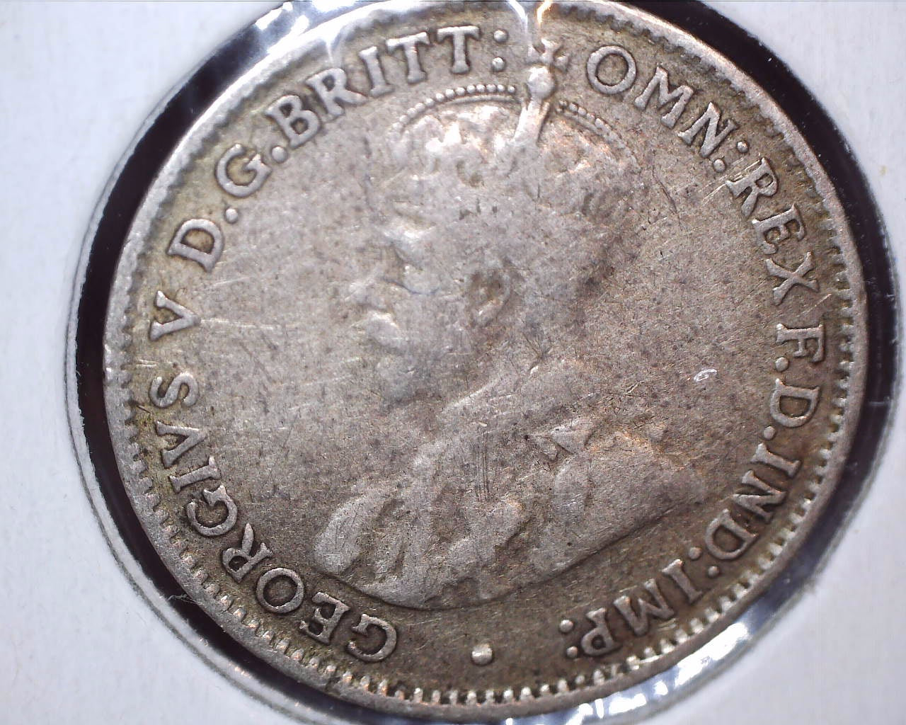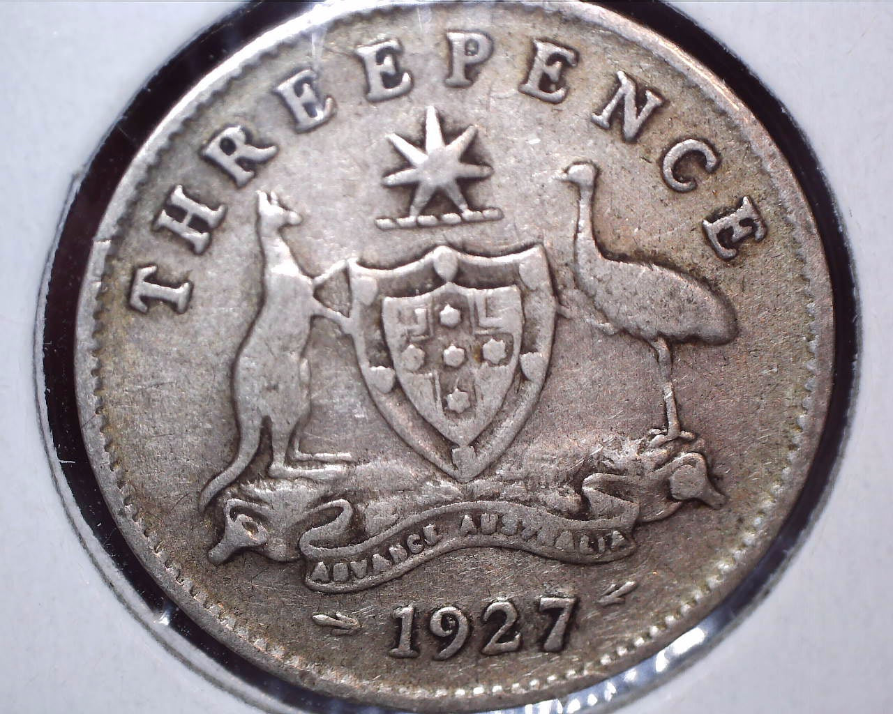 1927 Australian Three Pence - 92.5% Silver - Break in Emu Leg Error