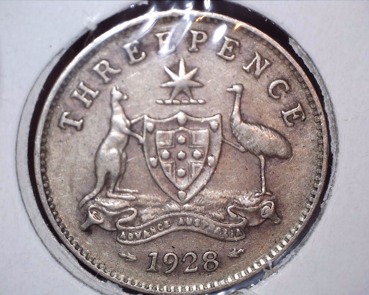 1928 Australian Three Pence - 92.5% Silver - Doubling Error