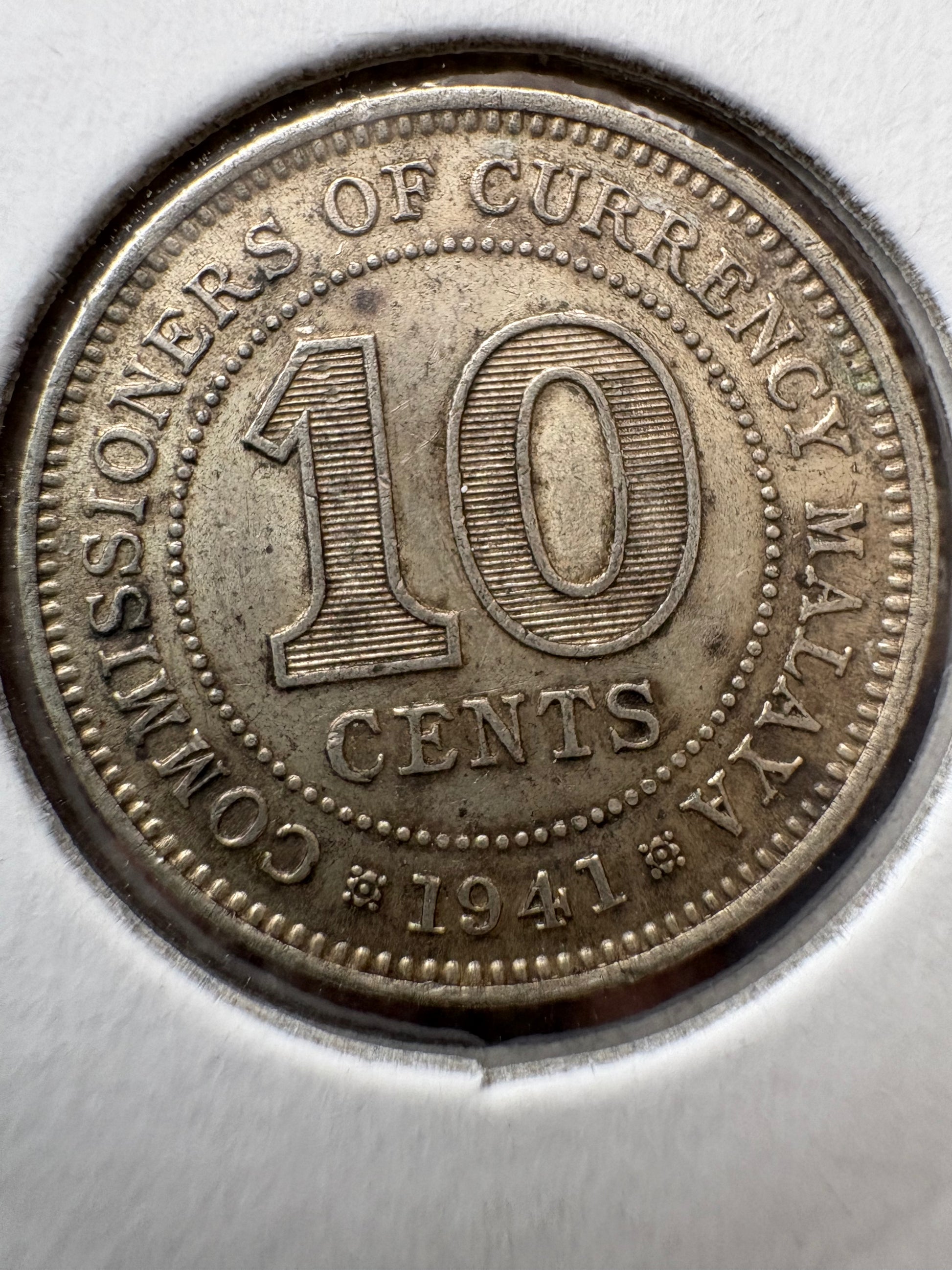 1941 Malaya 10 cent .750 Silver KM# 4