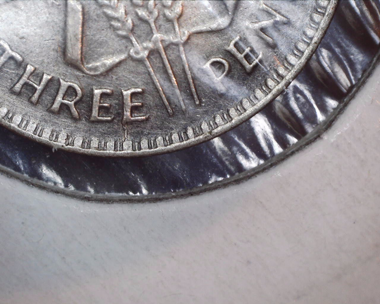 A "1943 D Australian three pence die crack error" refers to where the design on the coin shows visible "die crack" - a flaw in the die that resulted in a noticeable raised line or crack on the coin's surface, making it a collectible error coin with potentially high value for numismatists