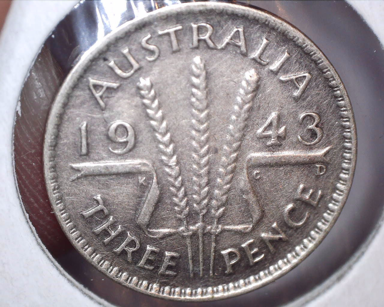 1943 D Australian Three Pence - 92.5% Silver - Die Crack Error