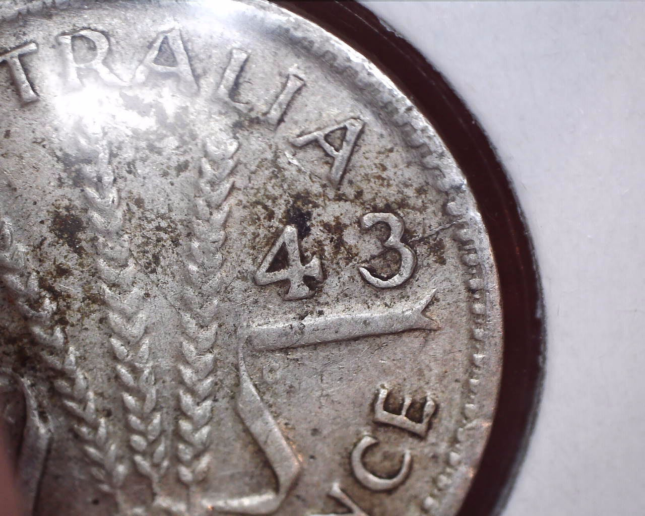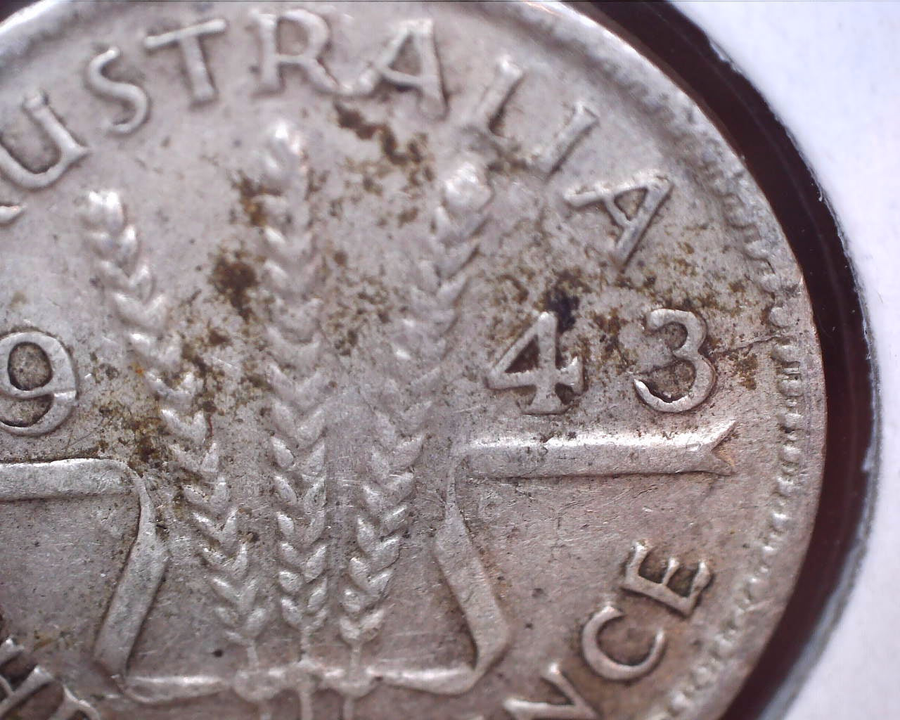 A "1943 M Australian three pence die crack error" refers to where the design on the coin shows visible "die crack" - a flaw in the die that resulted in a noticeable raised line or crack on the coin's surface, making it a collectible error coin with potentially high value for numismatists