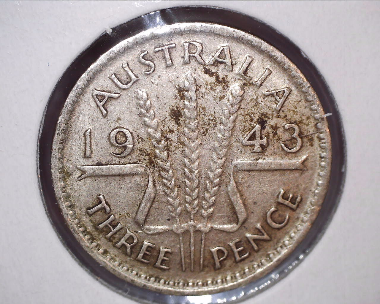 1943 M Australian Three Pence - 92.5% Silver - Die Crack Error
